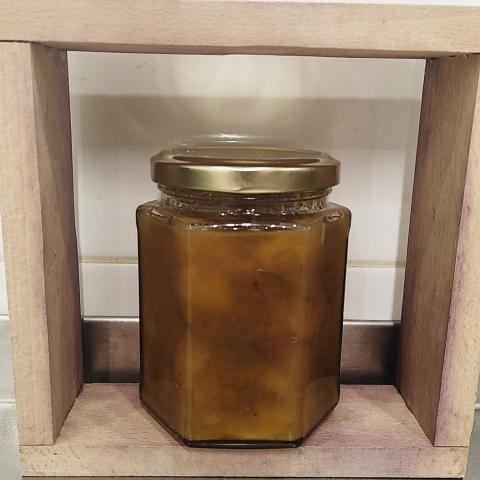 Panier contient : fruit au sirop, mélange pickles aigre doux, asperges de bois à l'aigre doux, chutney, trio confitures ou gelée 3*200g, pains d'épices 4pc de saison, pâte de piment ou trompenade ou pâte de raifort 40g