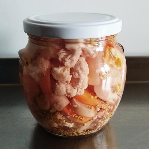 Panier contient : cornichons ou pickles aigre doux, ketchup, pain d'épice des saison, deux confitures 200g